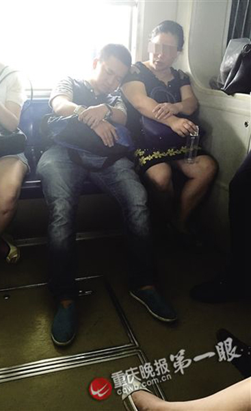 A woman in her 40s got on the bus chatting with her male companion and took a seat beside Reporter A. The reporter dozed off and leaned on her shoulder. The woman shouted surprisingly after she found the sleeping reporter: “The guy is dozing off.” And she suddenly turned round. (Photo from CQWB)