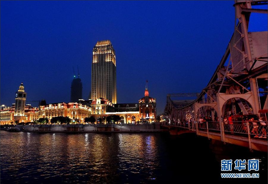 The night view of Haihe River in Tianjin, June 29, 2013. (Xinhua/Wang Song)