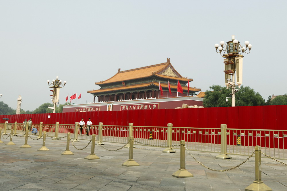Construction enclousure has been erected in Tian'anmen Square for coming V-day parade in September. The parade is part of the event series to mark the 70th anniversary of victory of China’s Anti-Japanese Aggression War during WWII.