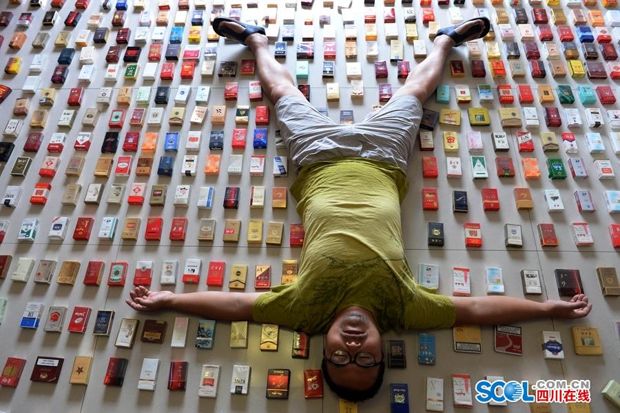 Yue Guosheng collects a vast variety of cigarette packs. (photo/scol.com.cn)