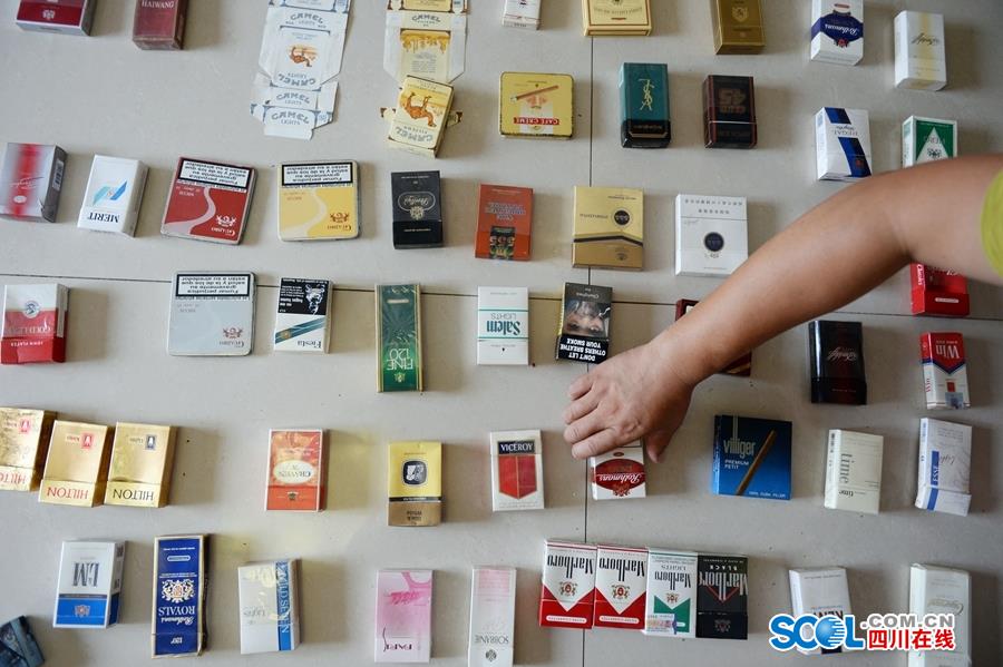 Yue Guosheng collects a vast variety of cigarette packs. (photo/scol.com.cn)
