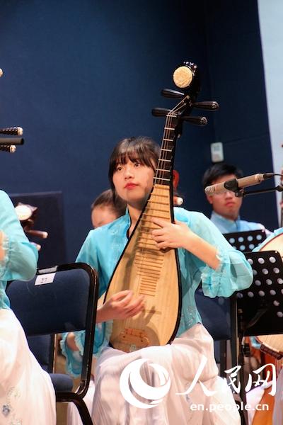 Orchestral plucked string music is performed by the Shanghai Yangpu Children’s Palace Students’ Art Troupe on August 13th at the Wits Great Hall, Johannesburg, South Africa. (Picture: People’s Daily Online / Zhang Jiexian)