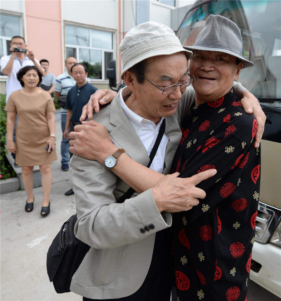 73-year-old Japanese war orphan Nakajima Yuhachi and his old Chinese teacher.(Photo/Xinhua)