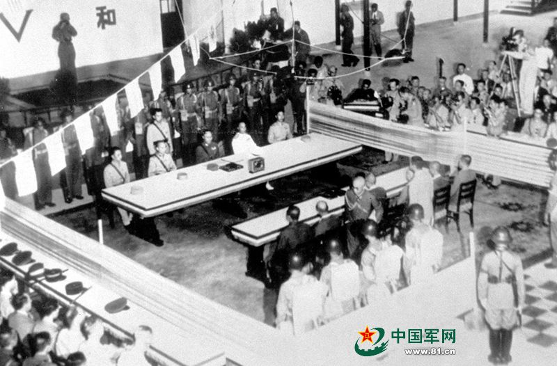 On Sept. 9, 1945, the commander-in-chief of Japan's China Expeditionary Army, Yasuji Okamura, signed the Japanese Instrument of Surrender in Nanjing.(File photo/81.cn)