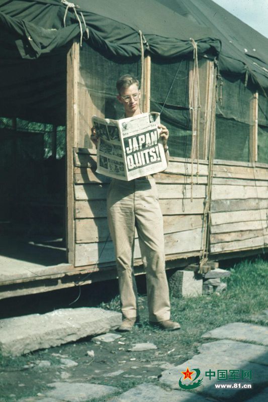 An American soldier reads news reports about Japan’s surrender. (File photo/81.cn)