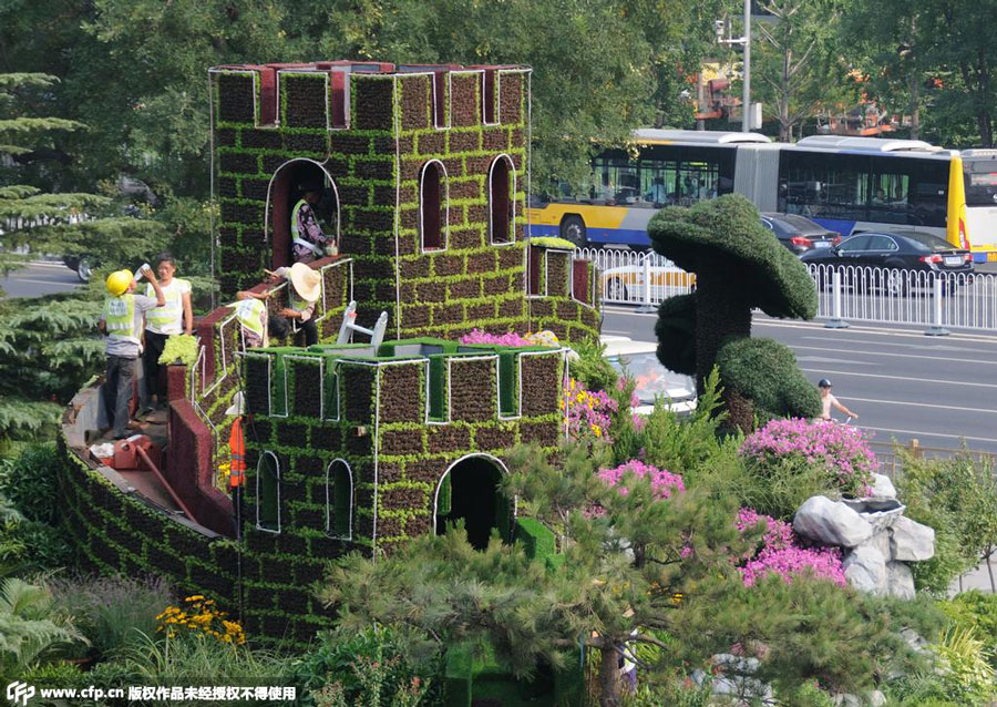 Great Wall-shaped flower terrace to celebrate the V-day parade in Tiananmen Square (2)