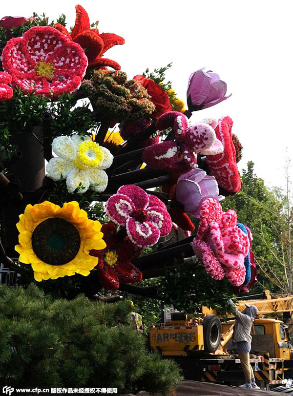 Great Wall-shaped flower terrace to celebrate the V-day parade in Tiananmen Square (3)
