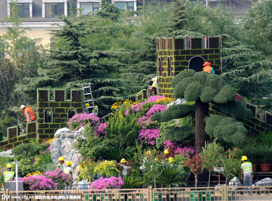 Great Wall-shaped flower terrace to celebrate the V-day parade in Tiananmen Square (4)