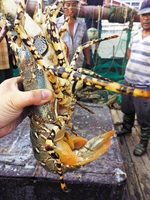 The price of it can be dear. According to the local seafood shop owner, an ornate spiny lobster of this size can sell from 700 to 800 yuan (around 109-125 USD) per kilogram.