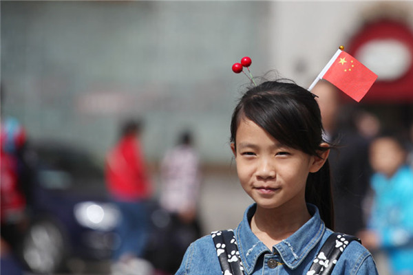 Getting into the spirit of National Day. On October 1st, tens of thousands of national flags made their appearance not only on the buildings or poles, but also flying proud on people's heads. From afar, it looks like a five-starred red flag has germinated from the top of the head. Across major cities like Beijing, Shanghai, Nanjing, many have been spotted sprouting these quirky hairpins.