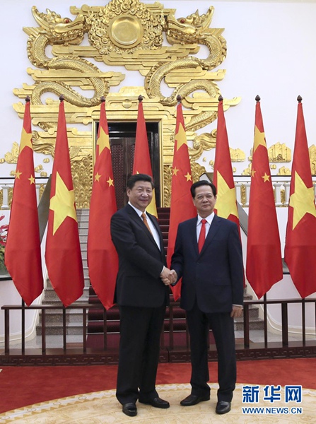 Xi Jinping holds talks with Vietnamese Prime Minister Nguyen Tan Dung in Hanoi.