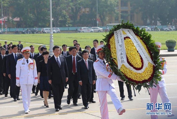 Xi Jinping attends a wreath laying ceremony at Ho Chi Minh Mausoleum in Hanoi.