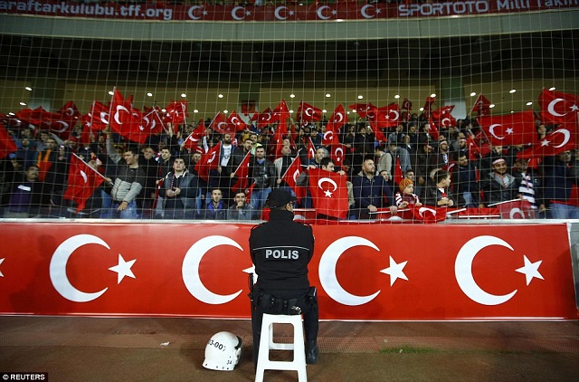 Turkish Prime Minister Ahmet Davutoglu and Greek counterpart Alexis Tsipras were both at the scene watching the friendly, and witnessed the chaos on the spot.