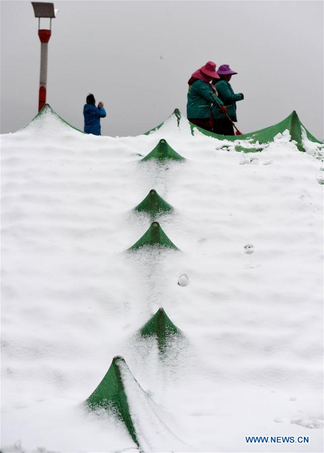 Vegetation are covered by snow by the Dianchi Lake in Kunming, capital of southwest China's Yunnan Province, Jan. 24, 2016. A cold wave and snowfall hit Kunming, known as the Spring City, at this weekend. (Xinhua/Lin Yiguang)