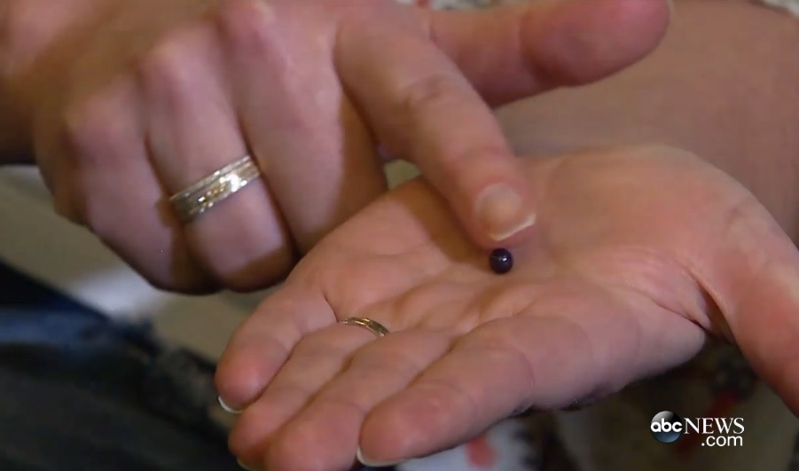 The pearl found in the meal (Stills from ABC News video)