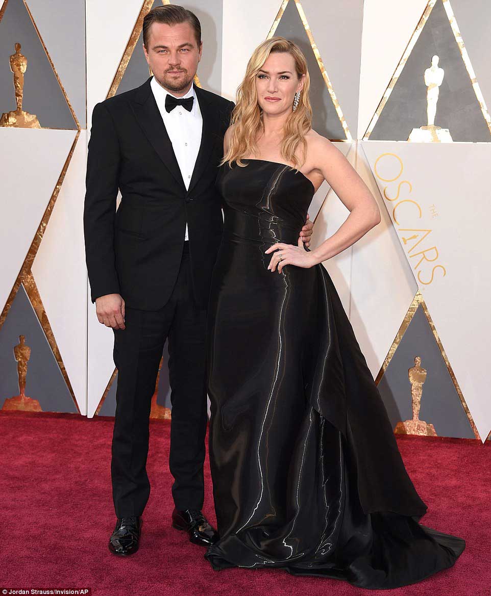 Could it finally be his year?: Best Actor hopeful Leonardo DiCaprio posed with his Titanic co-star Kate Winslet, who is up for Best Supporting Actress
