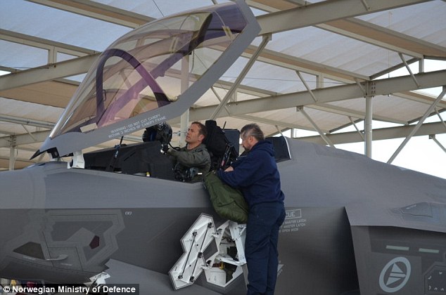 Major Morten 'Dolby' Hanche, pictured beside his F-35 believes the $100 million aircraft is a dramatic improvement on the older generation F-16 which he has flown for more than 2,200 hours.