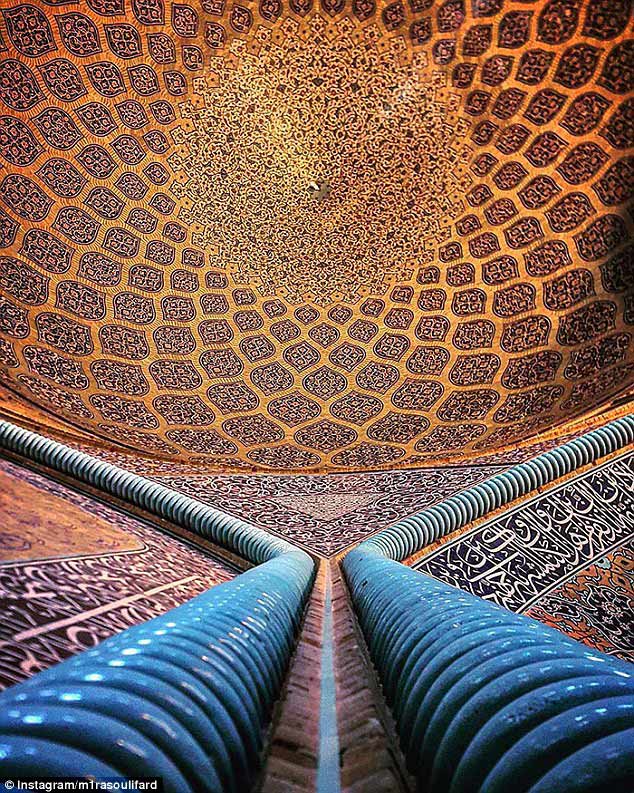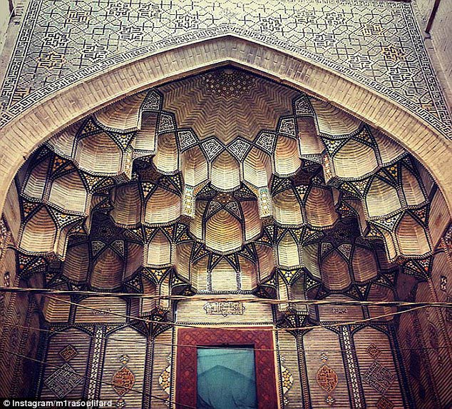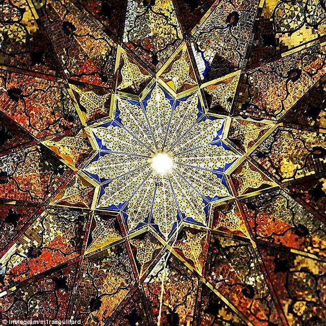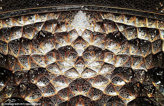 Iranian architect Mehrdad Rasoulifard dedicates his time to capturing some of the most ornate and eye-catching mosques and buildings in the country and has racked up over 14,000 followers in the process on Instagram. Pictured is Hafez’s tomb in Shiraz, Fars.