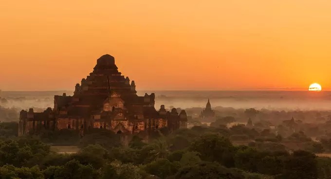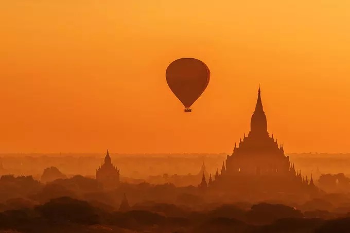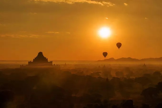 The intoxicating photos show hot-air balloons fly over Plain of Temples at the sunrise in Bagan, central Myanmar. The kings of ancient Bagan has built over 10,000 Buddhist temples between the 11th century and 13th century. Today, over 2,500 red brick temples and other ancient buildings are still standing across the Manhattan-size desert plain of the Bagan city.