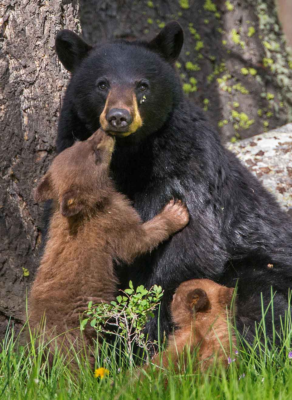 Bears hugs and kisses: A black bear cub snuggles up in America's Yellowstone National Park, located in Wyoming, Montana and Idaho