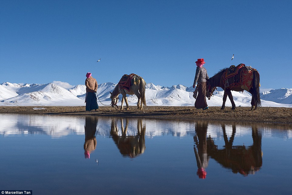 He has voyaged to China, Tibet, Indonesia, Myanmar, Italy, Iceland. The above image of locals walking with their horses was taken in Tibet
