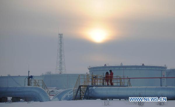 Workers inspect the pipeline equipments in Daqing, northeast China's Heilongjiang Province, Jan. 10, 2011. (Xinhua/File Photo)