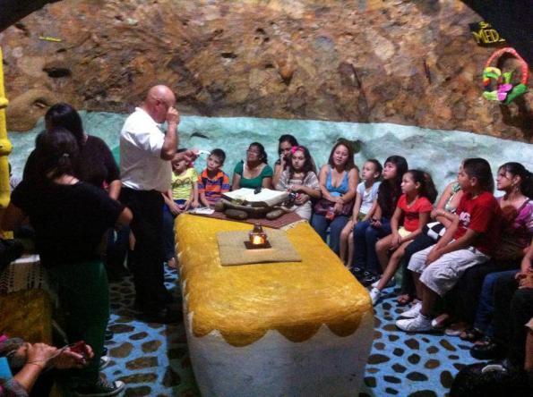 Barrantes also holds tours for kids once in a while, and explains to them something about geology and archeology. (Photo/Chinadaily)