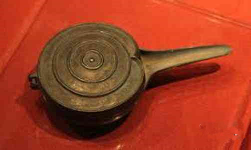 The pottery barbecue grill from Han Dynasty (206 BC-AD 220) is 20-cm-long, 16.5-cm-wide, and 14-cm–high. The grill, which has strong resemblance to today's grills, has two crooked chisels on its top, which bunches five cicadas. Though having weathered many years, the cicadas can still be seen clearly.