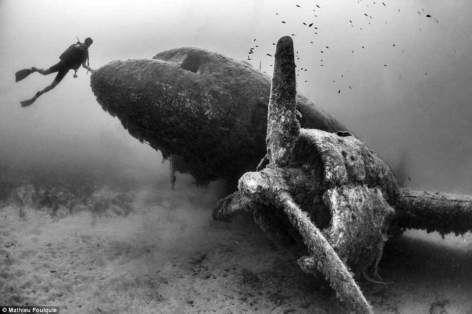 Crash: This atmospheric shot of the wreck of a Dakota DC3 passenger plane off the coast of Turkey won Mathieu Foulquié a silver medal