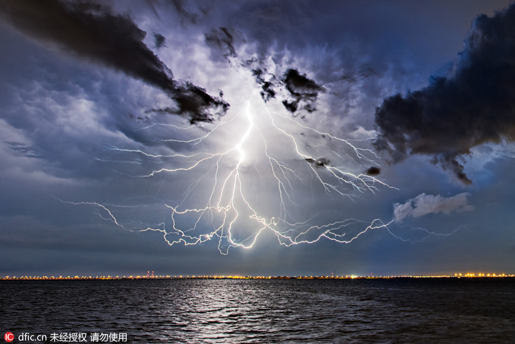 Lightning bolts strike in split of seconds. The amazing void that took place just right before the bolts slashed the earth was captured by Photographer Frank Delargy.