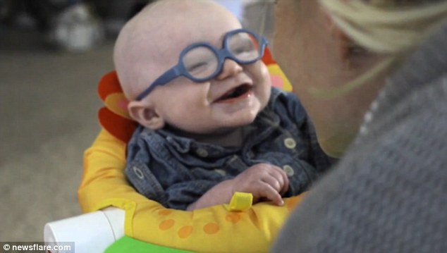 When they put on the glasses onto the baby, Leo, first time seeing his mother so clearly, gave an angelic smile.