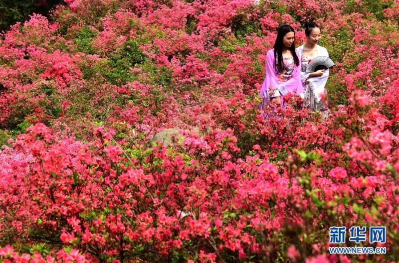 Azalea blossoms are perhaps one of the most passionate pigments for Mother Earth to dress itself. Recently azalea is in full bloom in Wuhan, provincial capital of central China’s Hubei province, attracting numerous visitors. Some of them don ancient costumes for a nice and artistic portrait in the sea of flowers.