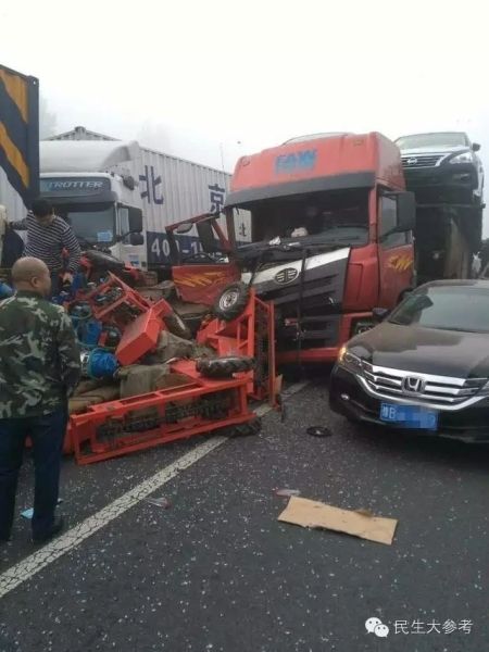 A pileup involving four trucks and a car occurred at 6:30 a.m. Wednesday at the section of Nanle County on the Daqing-Guangzhou Expressway due to heavy fog, according to the Henan expressway public security bureau.