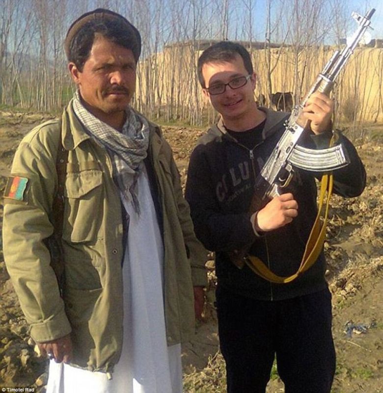 Rad claims he had had a lot of adventurous moments with strangers during his hitch-hikes. He said he came face to face with a member of the Taliban in Afghanistan and, not only lived to tell the tale, but also posed for a selfie with him - while holding his gun. Stopping the vehicle, the driver climbed out and whistled - and an armed fighter emerged from the forest carrying a machine gun.