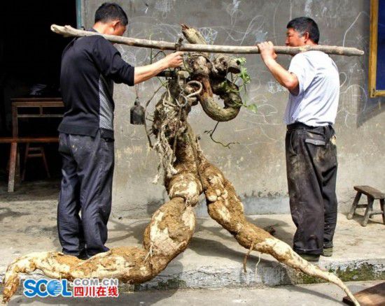 A giant pueraria weighing 125 kilograms was recently dug out by a villager in southwestern Sichuan province. What's more amazing is that the pueraria is in the shape of a running man.