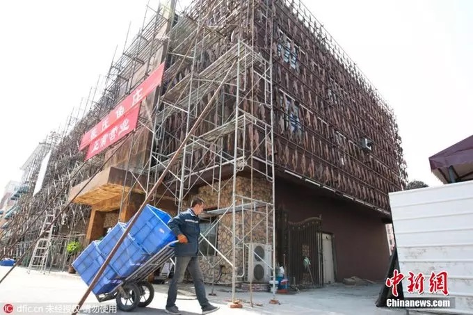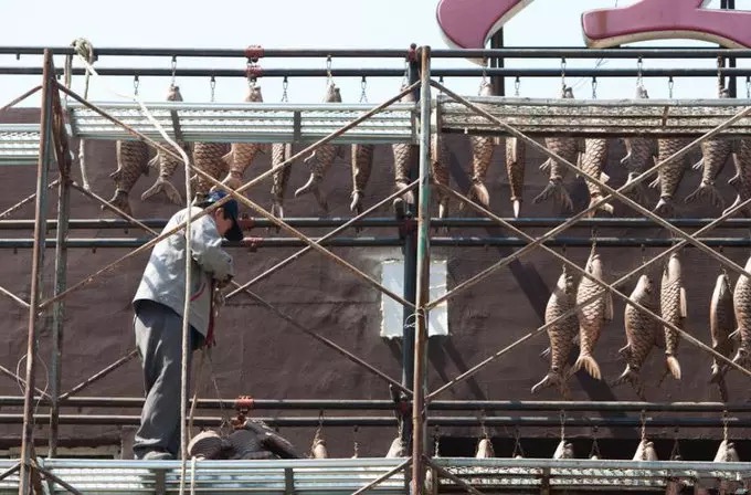Photos taken on April 27, 2016 show that a restaurant is decorated with 50,000 fake fish hanging on its exterior in Changchun city, northeast China’s Jilin province. The fish are made of polyurethane material, the same as that used for steering wheels.