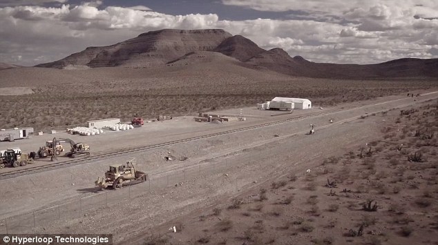 Technology for the Hyperloop will be demonstrated by one of the companies attempting to turn the plans into a reality at a track that has been constructed in the desert outside Las Vegas (pictured)