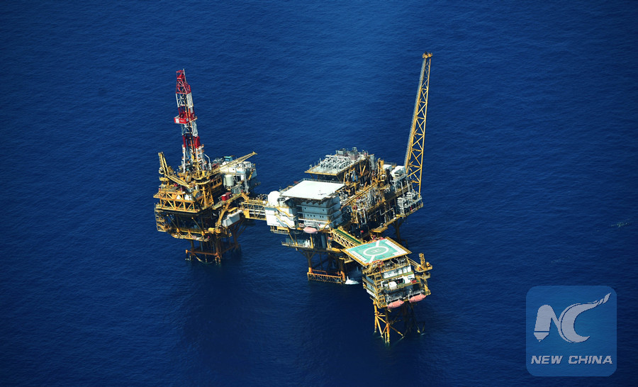 File photo: An aerial photo taken on Sept. 25, 2015 from a seaplane of Hainan Maritime Safety Administration shows the Yacheng 13-1 drilling rig during a patrol in the South China Sea.