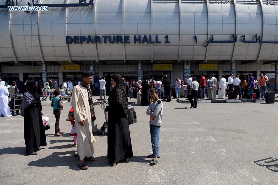 CAIRO, May 19, 2016 (Xinhua) -- Passengers are seen outside the Cairo International Airport, Egypt, May 19, 2016. A joint rescue team has been deployed to search for the EgyptAir flight which disappeared from radar screens early Thursday, the Egyptian military spokesman said in a statement. (Xinhua/Zhao Dingzhe)