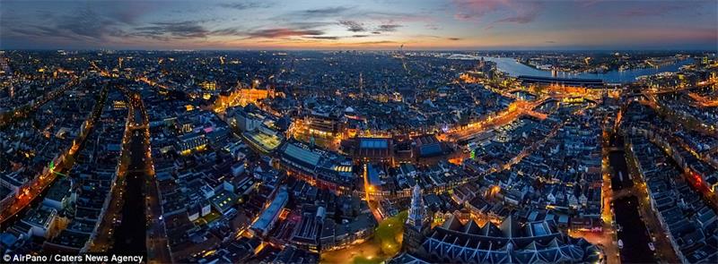 The group also have to seek permission from the cities they're photographing to fly the drones. Above, Amsterdam just after sunset