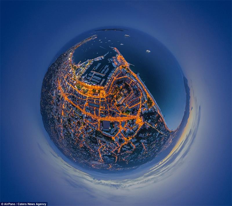 As well as the panoramic images, the group have also created pictures that make the landscape they're capturing warped so that it looks like they've zoomed in on earth. Above, Cannes in the south of France