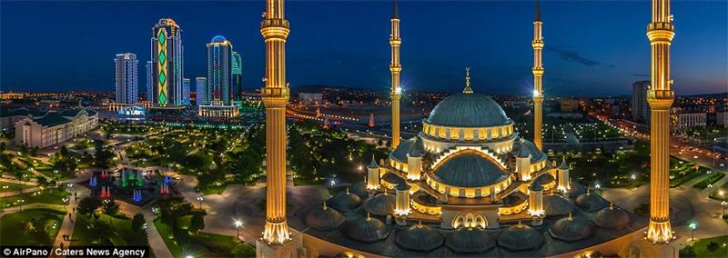 Sergey Rumyantsev, one of the members, says that getting permission has become more difficult in recent years due to the number of drones in the air. Above, a panoramic of Chechnya