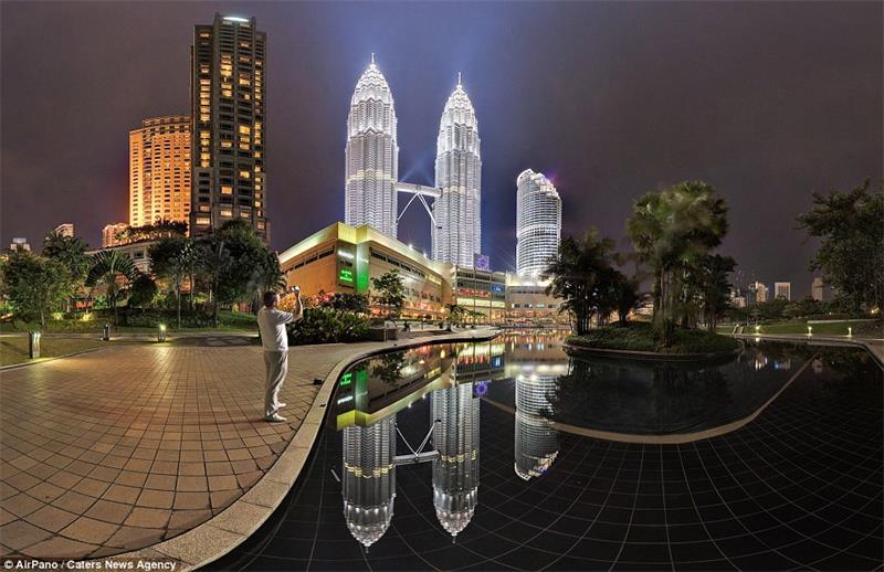 The Petronas Towers in Kuala Lumpur, Malaysia, are the focus of this image. They are one of the tallest twin towers in the world