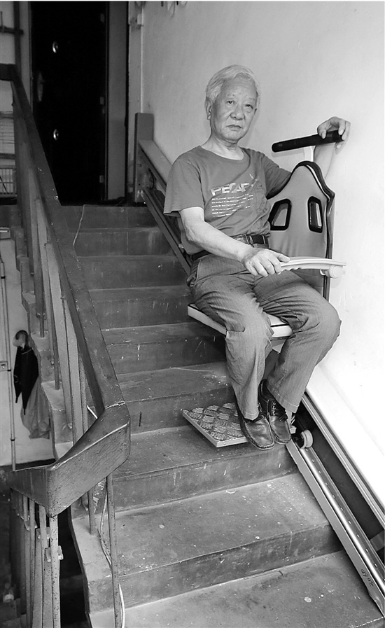 Xie Shizhang spends 200,000 yuan to have an elevator installed in the corridor for himself and his wife.(Photo/Qianjiang Evening News)