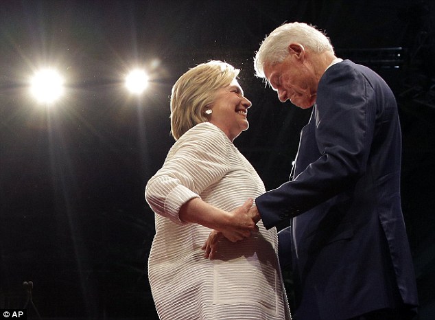 Hillary is seen here with husband Bill Clinton, a former president himself, at her rally tonight in Brooklyn.