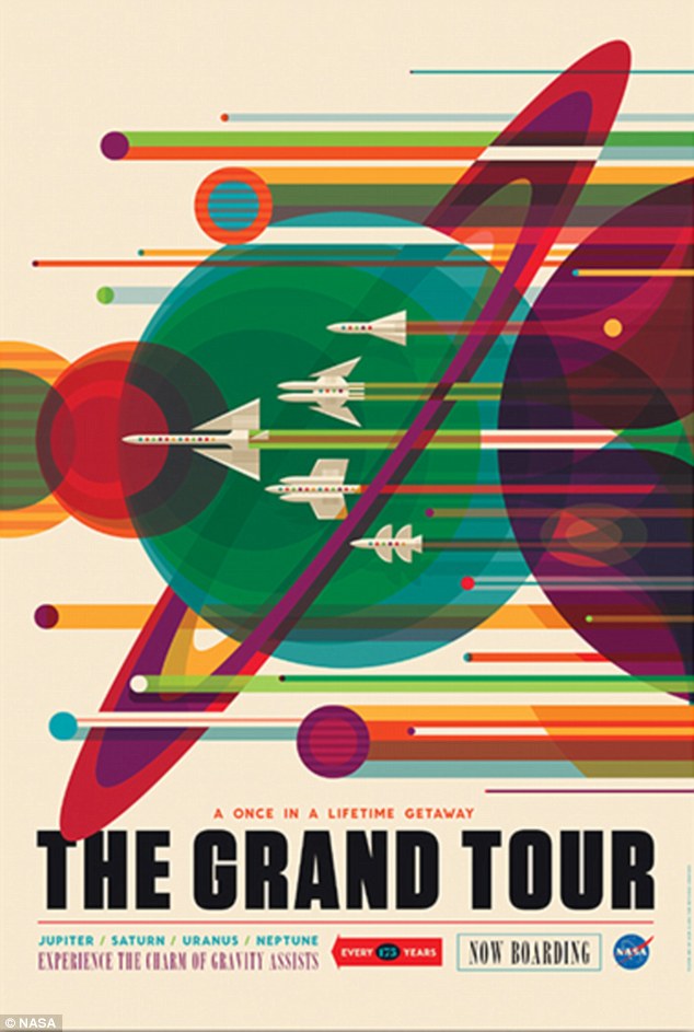 Creature created colourful space-themed travel posters commissioned by Nasa’s Jet Propulsion Laboratory for the 2016 calendar. The collection is split up into three themes that focus on the Voyager, Saturn’s moon and the red planet