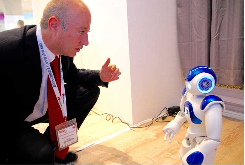 A visitor interacts with a dancing robot with Huawei Smart Home solution at AfricaCom in Cape Town. Picture: ZHANG JIEXIAN / PEOPLE’S DAILY ONLINE