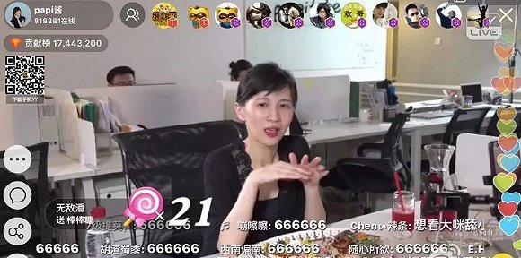 With 17 million followers on Weibo, Papi Jiang, a popular streaming celebrity, won her overnight fame by posting original sarcastic videos on social media. At 9 p.m. on July 11, this Chinese Internet comedian made her live-streaming debut on eight major platforms. Comments, “diamonds” and “Ferraris” filled the whole screen. By 10:30 pm, the total amount of online users had reached 2 million and the cash value of gifts Papi Jiang had received was estimated to be 900,000 yuan.