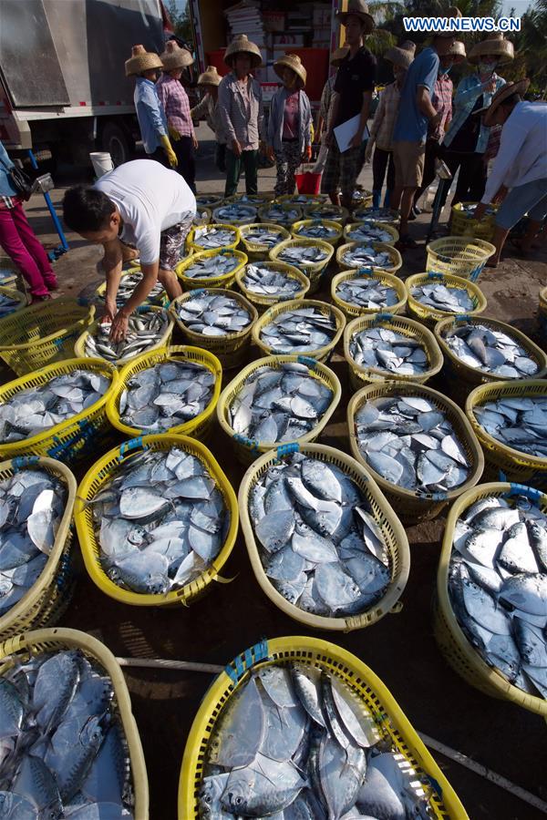 Fishermen unload fishes on a dock in Qionghai City, south China's Hainan Province, Aug. 7, 2016. Sunday marks "Liqiu", the first day of autumn on Chinese lunar calendar. (Xinhua/Meng Zhongde)