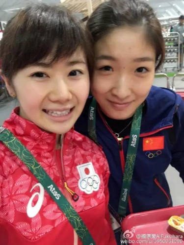 Fukuhara posts a picture with Chinese table tennis player Liu Shiwen on her Weibo page.